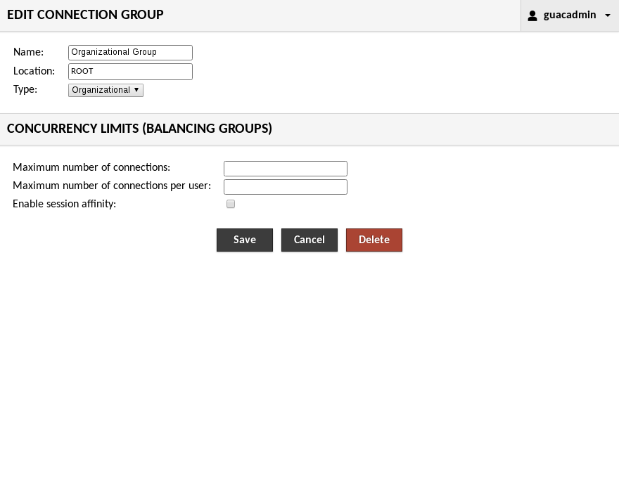Enabling session affinity for a balancing group ensures that users are consistently routed to the same underlying connections until they log out of Guacamole. The load balancing behavior of the balancing group will apply only for the first time a particular user connects to the group. If your users may lose their desktop state if they are routed to a different underlying connection, this option should be enabled.